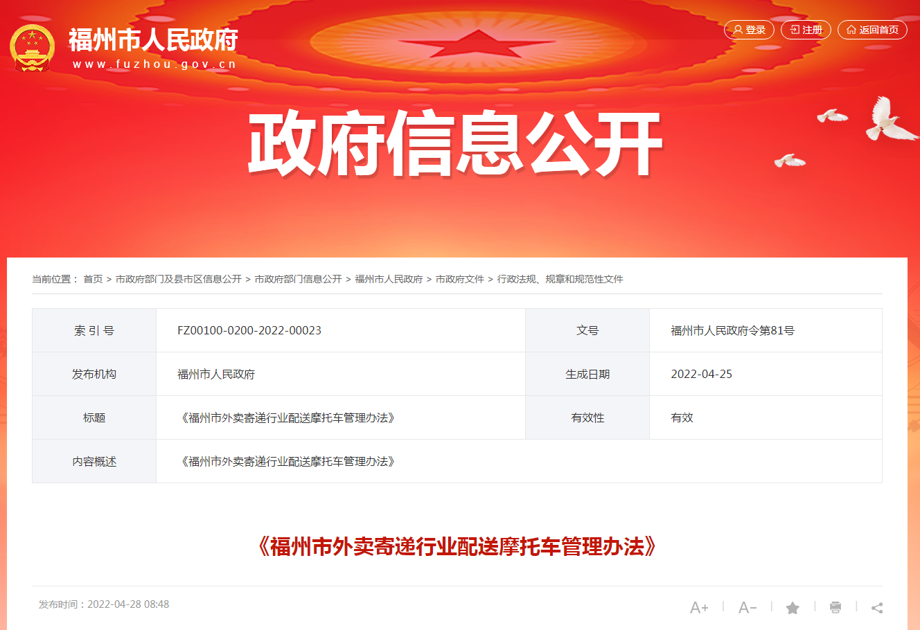 福州最新政府令:严管外卖寄递行业配送车辆